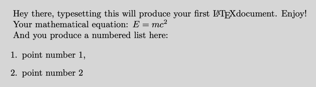 Hey there, typesetting this will produce your first \LaTeX document. Enjoy!
